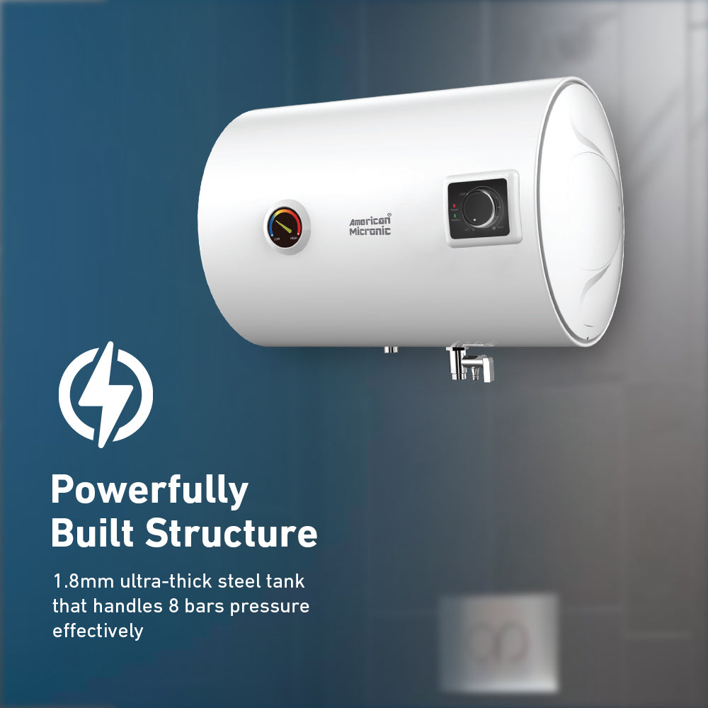 About American Micronic 15L Horizontal Water Heater with Titanium Glass Lined and BEE 5-Star Rating