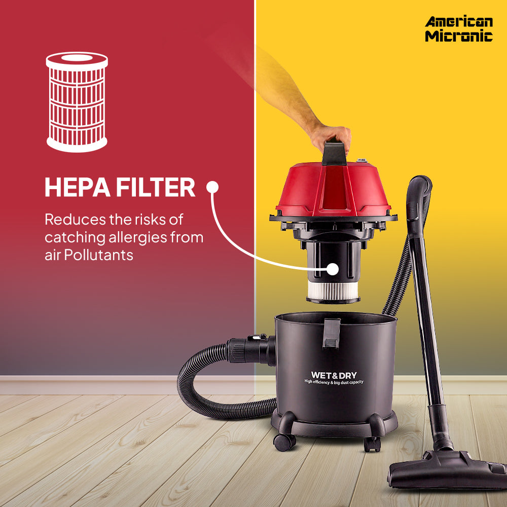 American Micronic 1600W Wet and Dry Vacuum Cleaner with HEPA filter 15 Litres