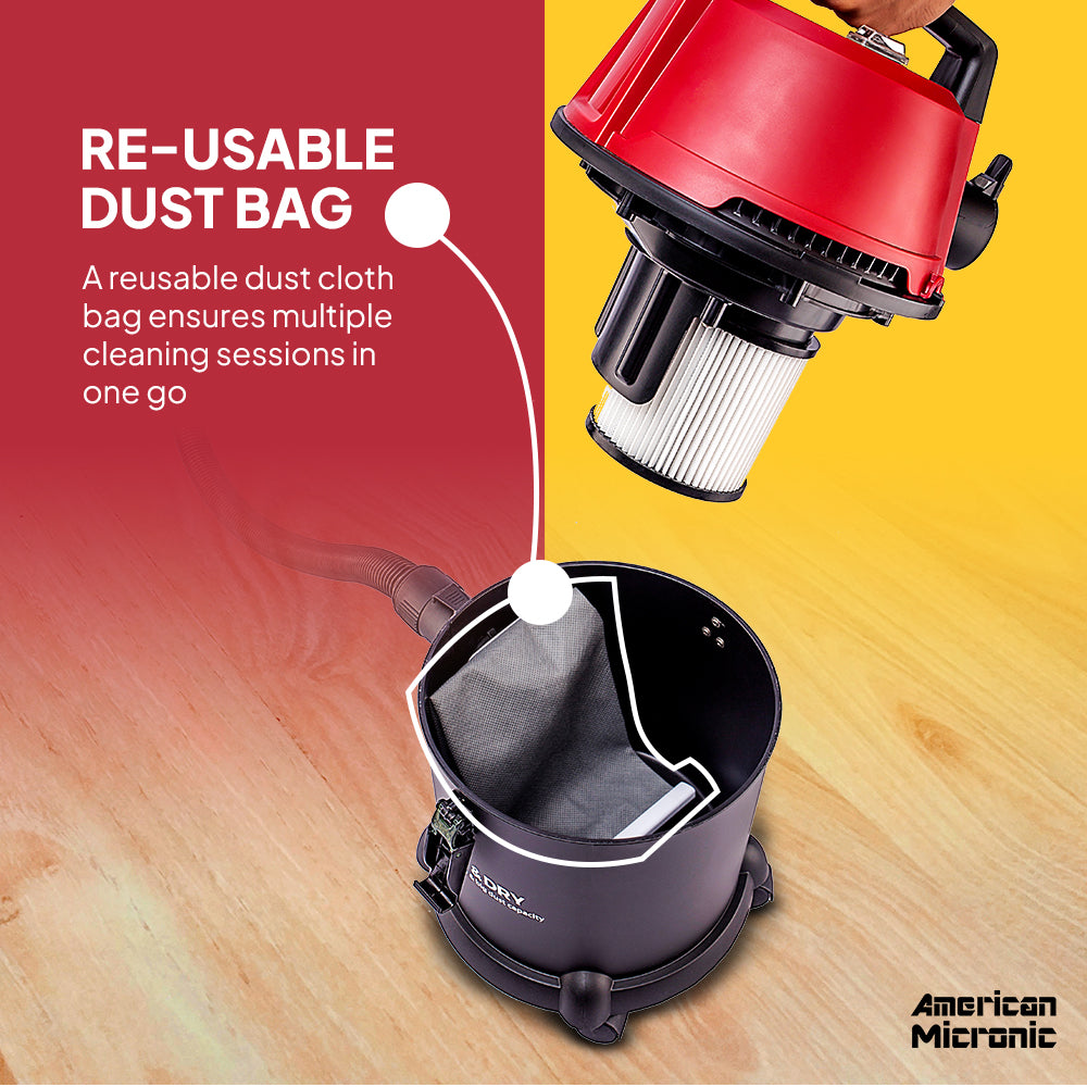 The reusable dust cloth bag enables multiple cleaning sessions with excellent filtration.
