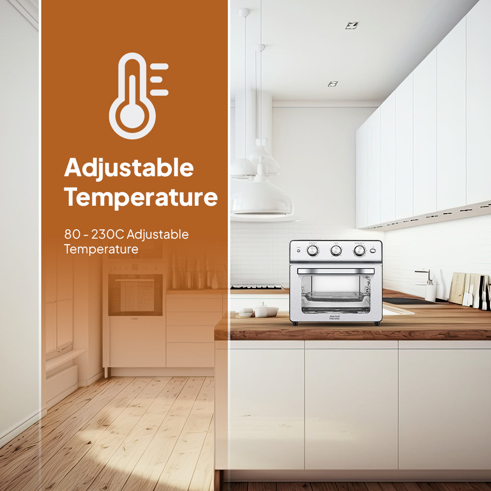 Adjustable temperature up to 230°C ensures precise cooking for different recipes.