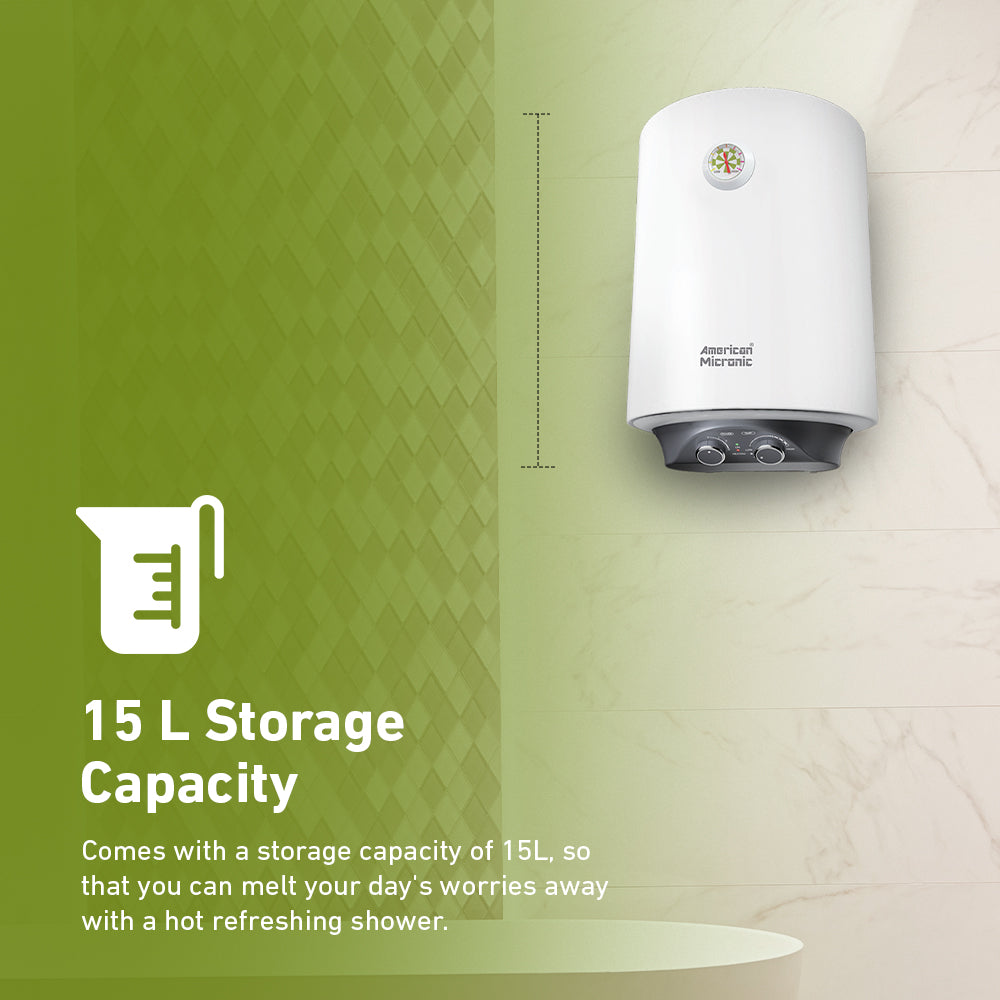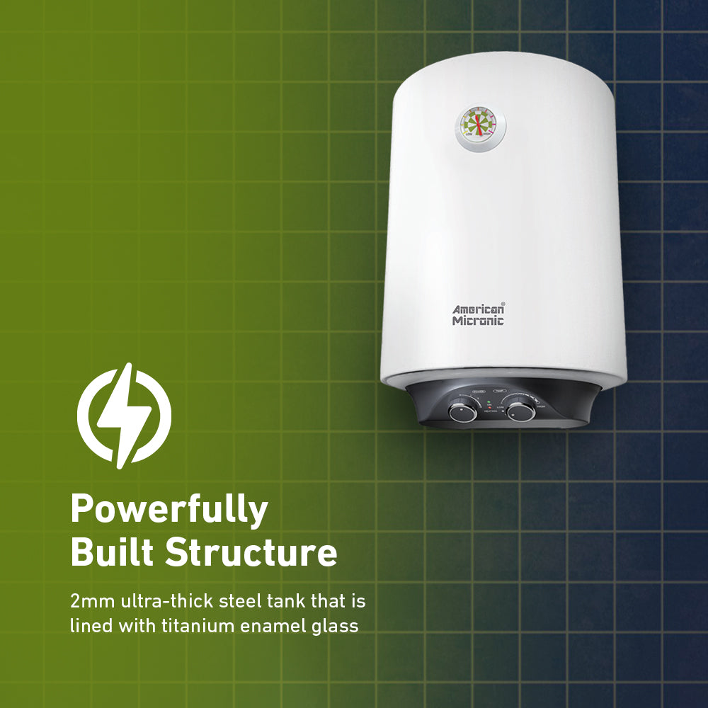 American Micronic 25 Ltr Imported Water Heater with Titanium Glass Lined Tank | BEE 5 Star Rated