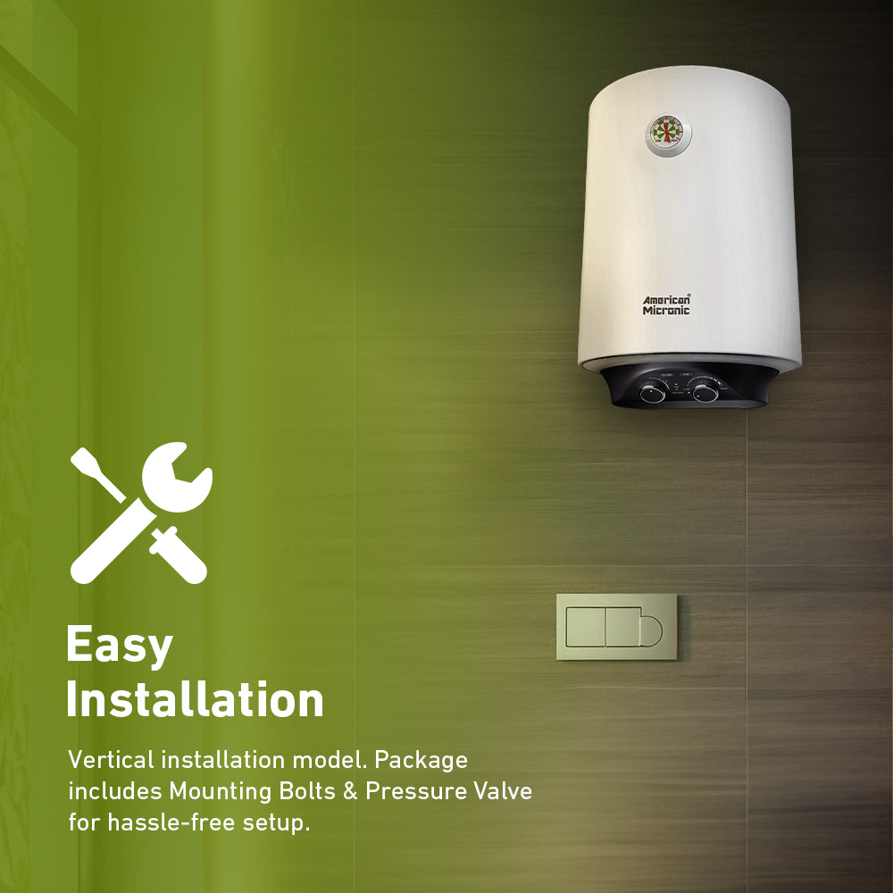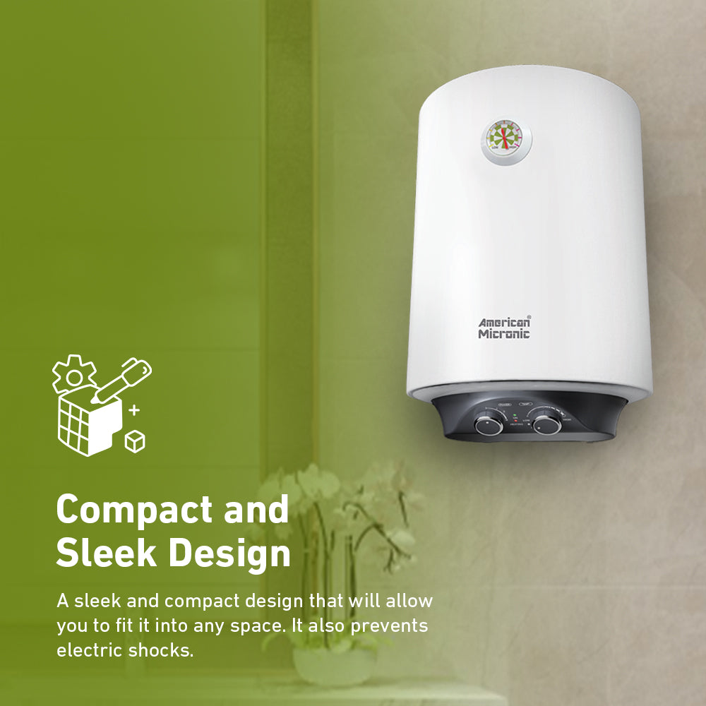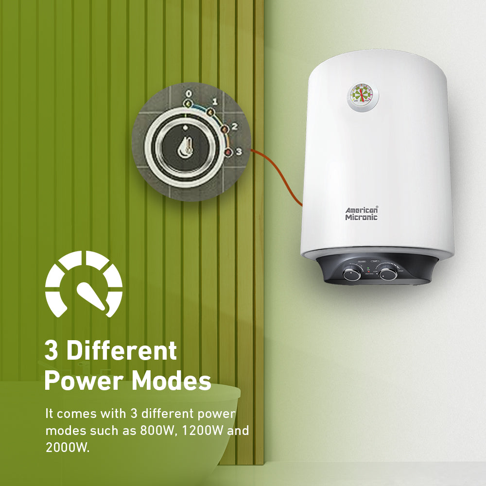 Meet the American Micronic Imported Water Heater (25 Litres) - AMI-WHM3-25LDx, a powerhouse solution for your hot water needs. This energy-efficient marvel boasts an 8-bar pressure Titanium Glass Lined Seamless Steel Tank, offering unparalleled durability and corrosion resistance. With three power modes (800W, 1200W, 2000W) and variable temperature control, it caters to your precise hot water requirements. The added magnesium anode fortifies its corrosion resistance. Awarded a coveted BEE 5-star rating, this heater seamlessly combines performance, energy efficiency, and unwavering reliability to elevate the experience.
