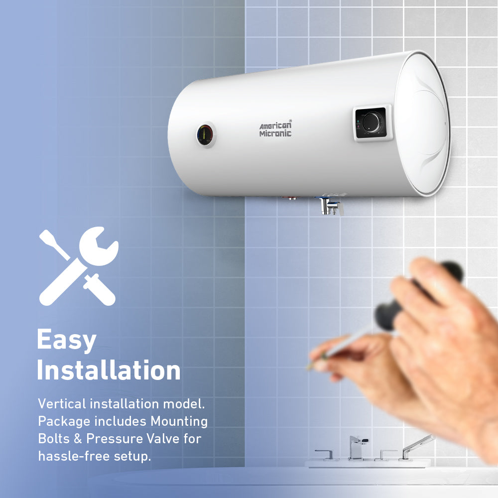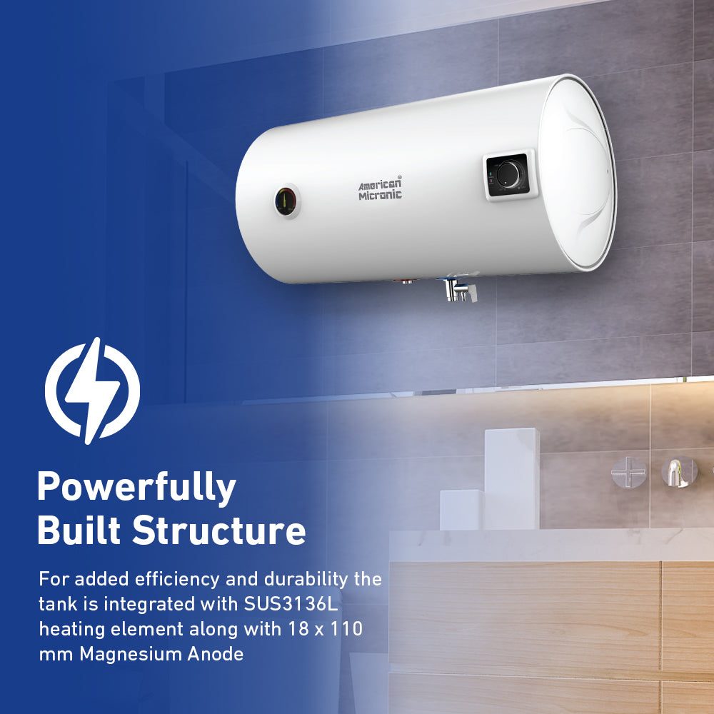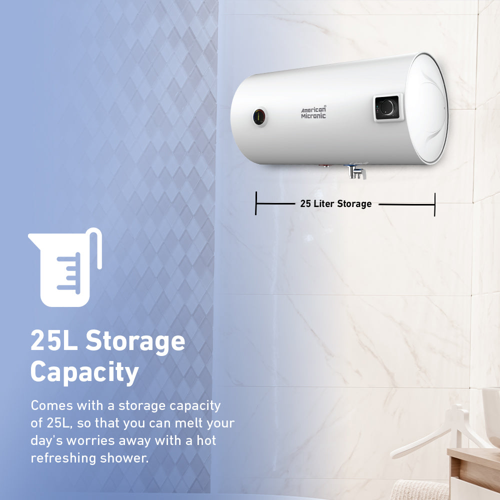 Introducing American Micronic's Premium 25 Litre Horizontal Water Heater where Seamless Elegance meets Top-Notch Performance