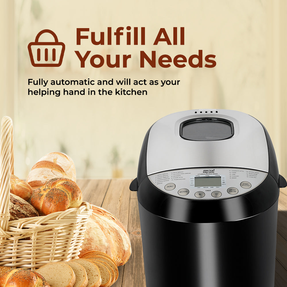 Introducing the AMERICAN MICRONIC Imported Atta and Bread Maker, the perfect addition to your home kitchen. With its fully automatic functions, this versatile appliance takes the hassle out of atta kneading and bread making. Enjoy the convenience of 19 pre-programmed menus that cater to your culinary preferences. From classic loaves to artisanal creations, the possibilities are endless. Choose from three crust colors to suit your taste, and monitor the process with the LCD. Powered by a reliable 550W motor, this sleek Black & Grey machine effortlessly combines functionality and style, making it a must-have for every home.