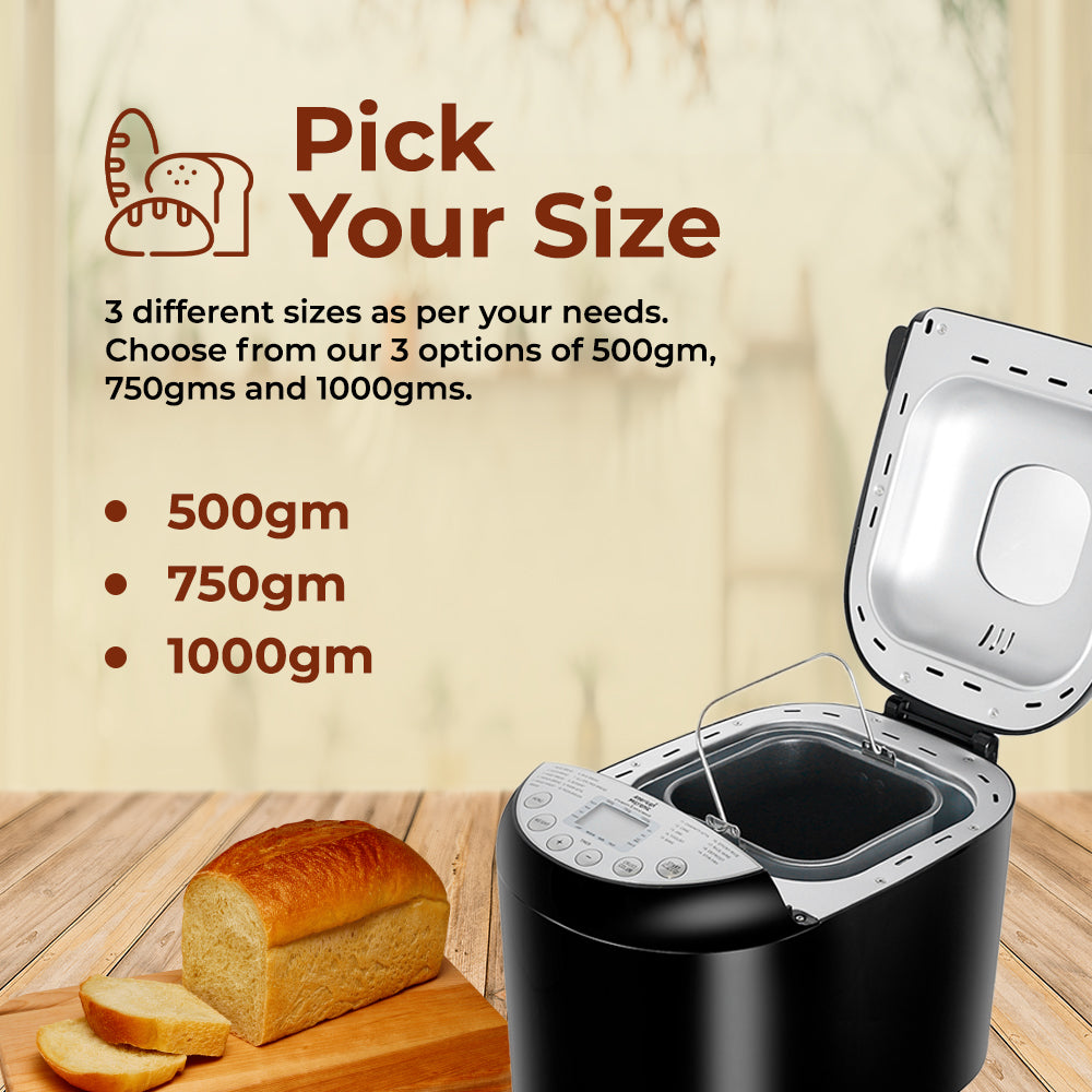 While preparing your bread, choose from the 3 different types of crusts; light, medium, or dark crust to give you that perfect crunch.