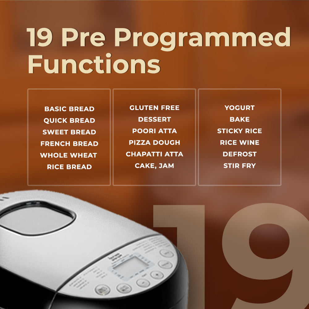 Fully Automatic Atta and Bread Maker with 19 Pre-Programmed Menus for Atta Kneading and Bread making